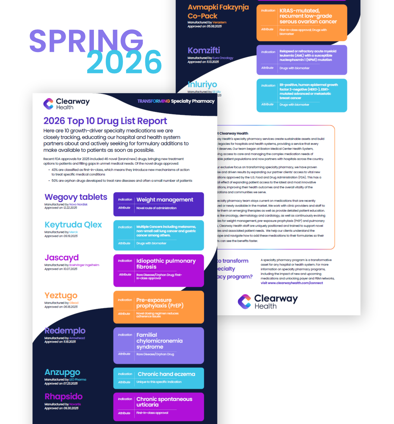 Here are 10 growth-driver specialty medications we are closely tracking, educating our hospital and health system partners about and actively seeking for formulary additions to make available to patients as soon as possible.